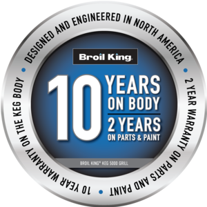 Broil KingThe Broil King® Keg™ 5000 features 480 sq. in. total cooking space, including a chrome coated secondary rack, a heavy-duty cast iron cooking grid, removable ash tray, resin side shelves, a durable steel base and metallic charcoal paint finish.