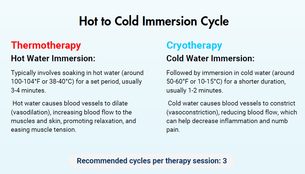 - Dual Temperature Zones: Effortlessly switch between hot water (up to 40°C/104°F) and cold water (as low as 3°C/37°F) for effective contrast therapy.